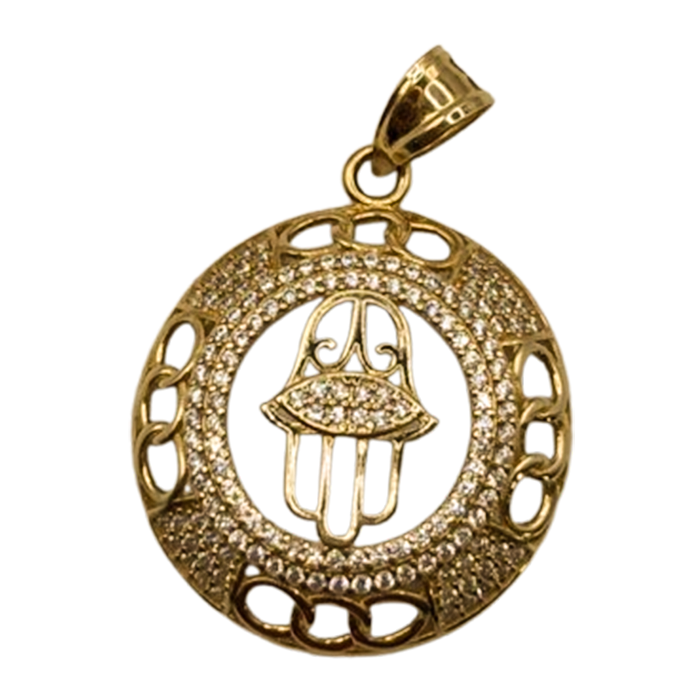 Zircons: The Hamsa pendant is adorned with zircons, which are brilliant, diamond-like stones that add sparkle and elegance to the piece. Zircons are affordable yet visually striking, providing a touch of luxury without the high price of diamonds.