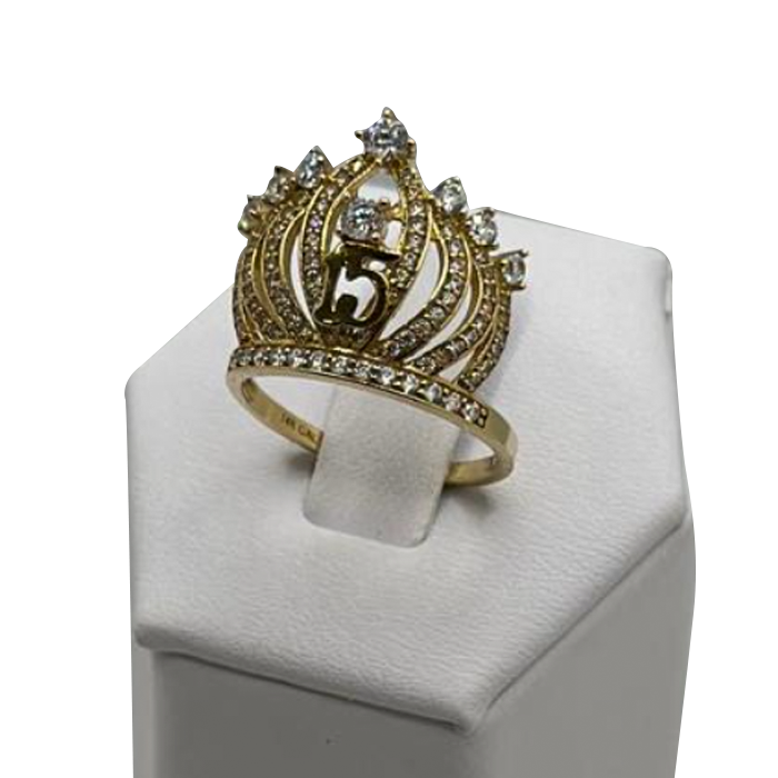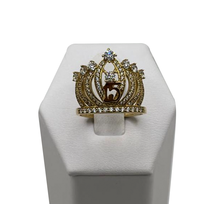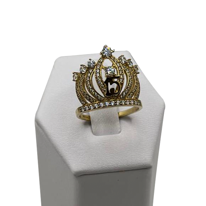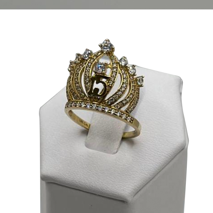14k gold quinceanera crown size 6.5 cz ring