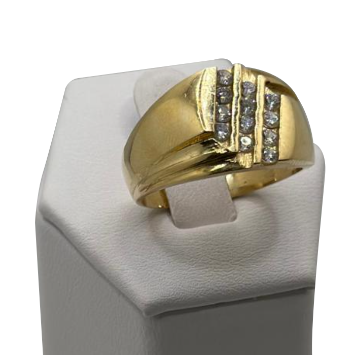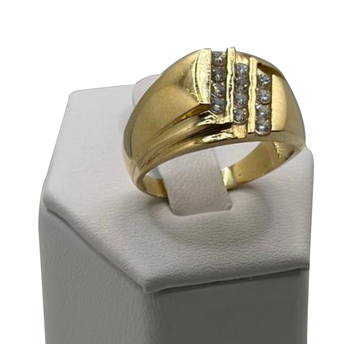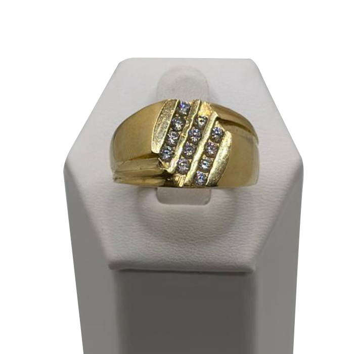 This Yellow Gold Men's Ring features 0.20 carats total weight of natural diamonds, set in a sophisticated and sleek design. Crafted from high-quality yellow gold, the ring showcases the diamonds in a way that maximizes their brilliance while maintaining a masculine elegance. Size 8 ensures a comfortable and secure fit. Ideal for adding a touch of refinement and sparkle to any ensemble, this ring is perfect for both everyday wear and special occasions.